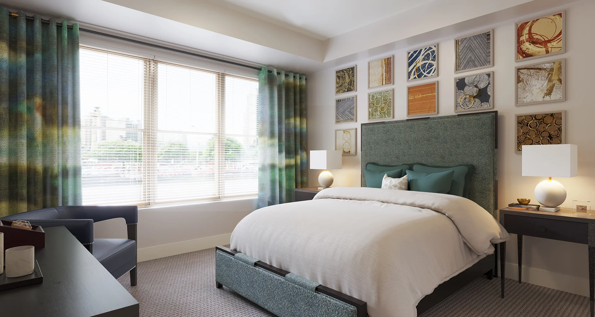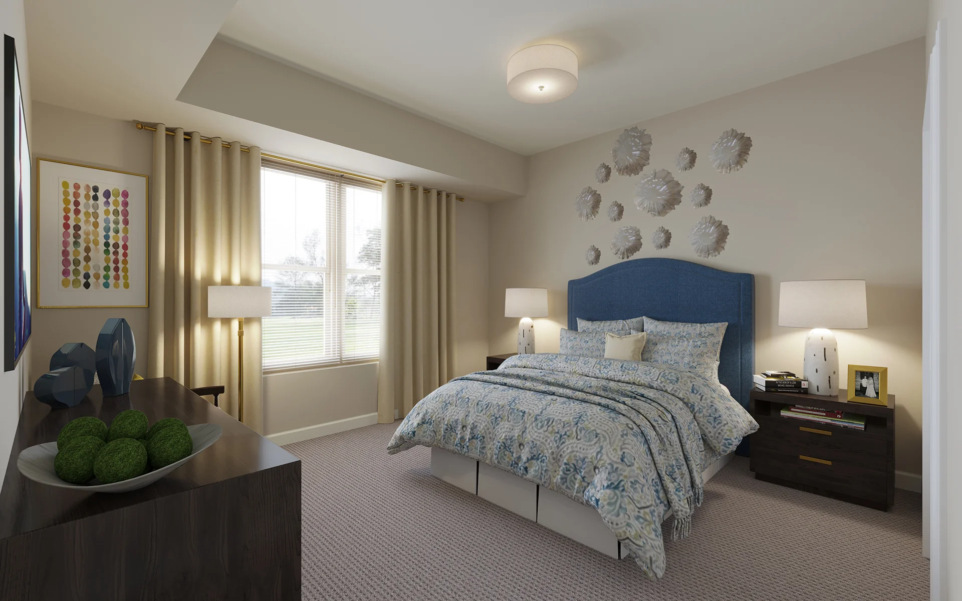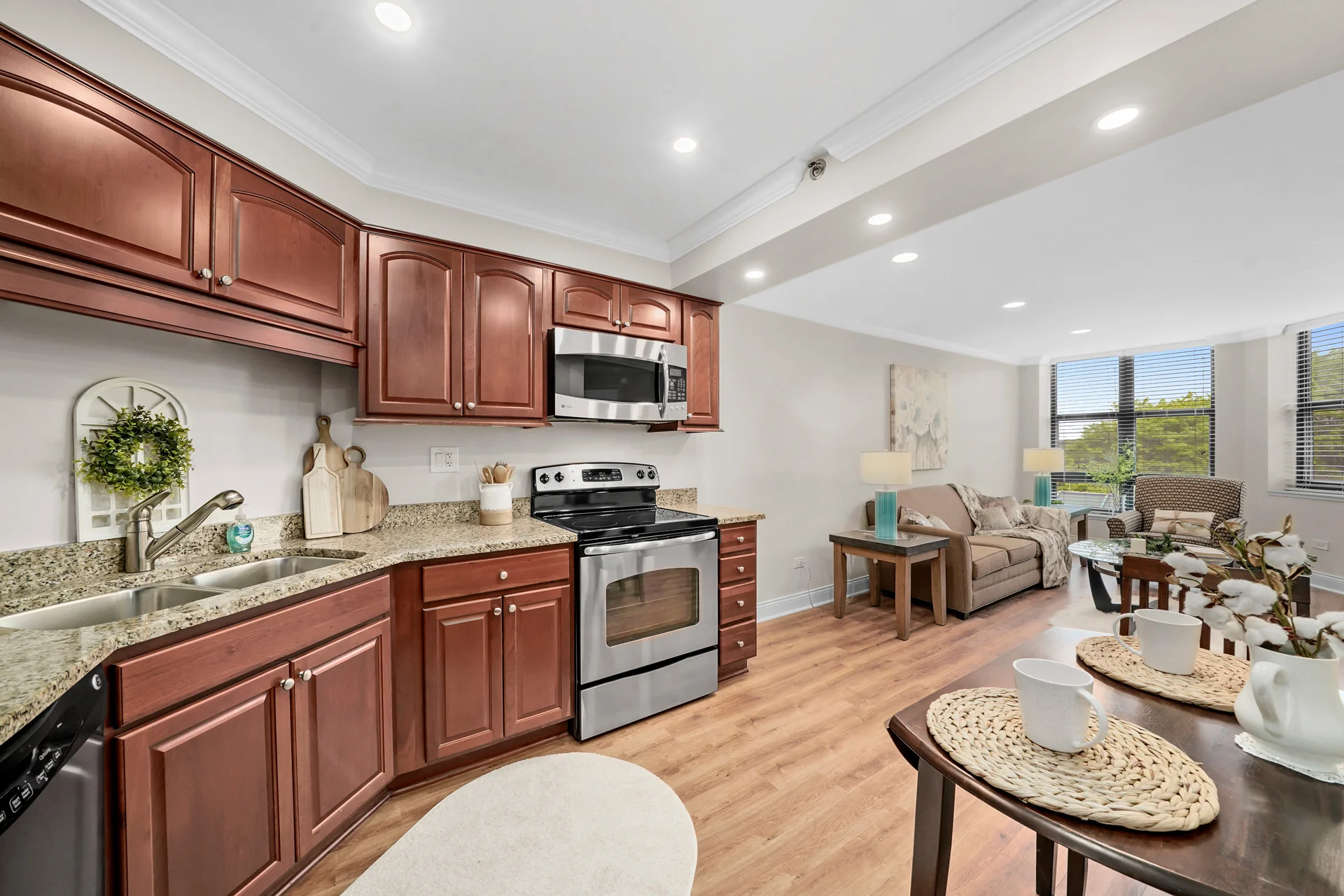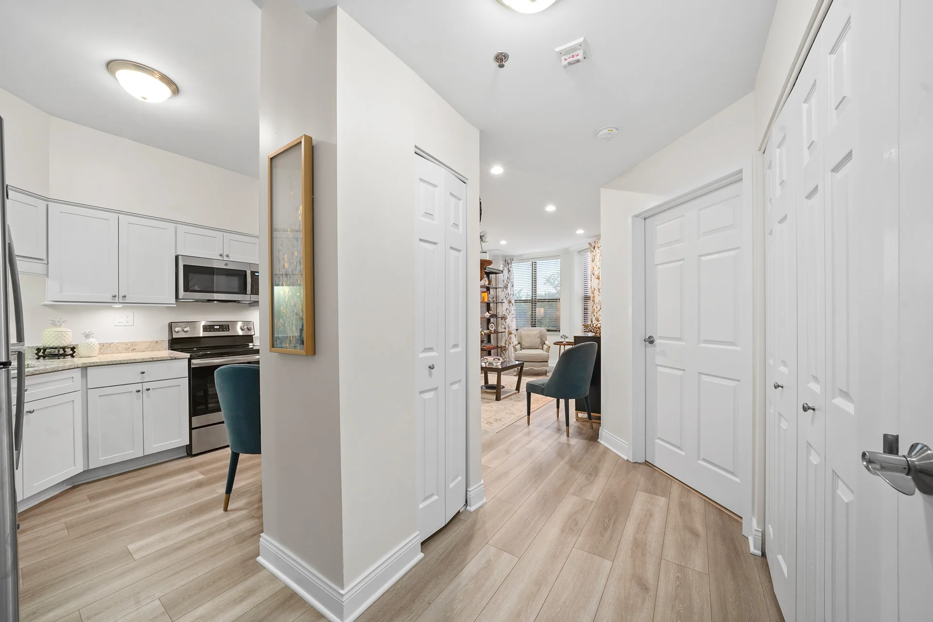 This luxurious one-bedroom residence features a large living area with a bay window located next to a beautiful kitchen and powder room. You’ll also enjoy a large bedroom, full bathroom and plentiful closet and storage space.