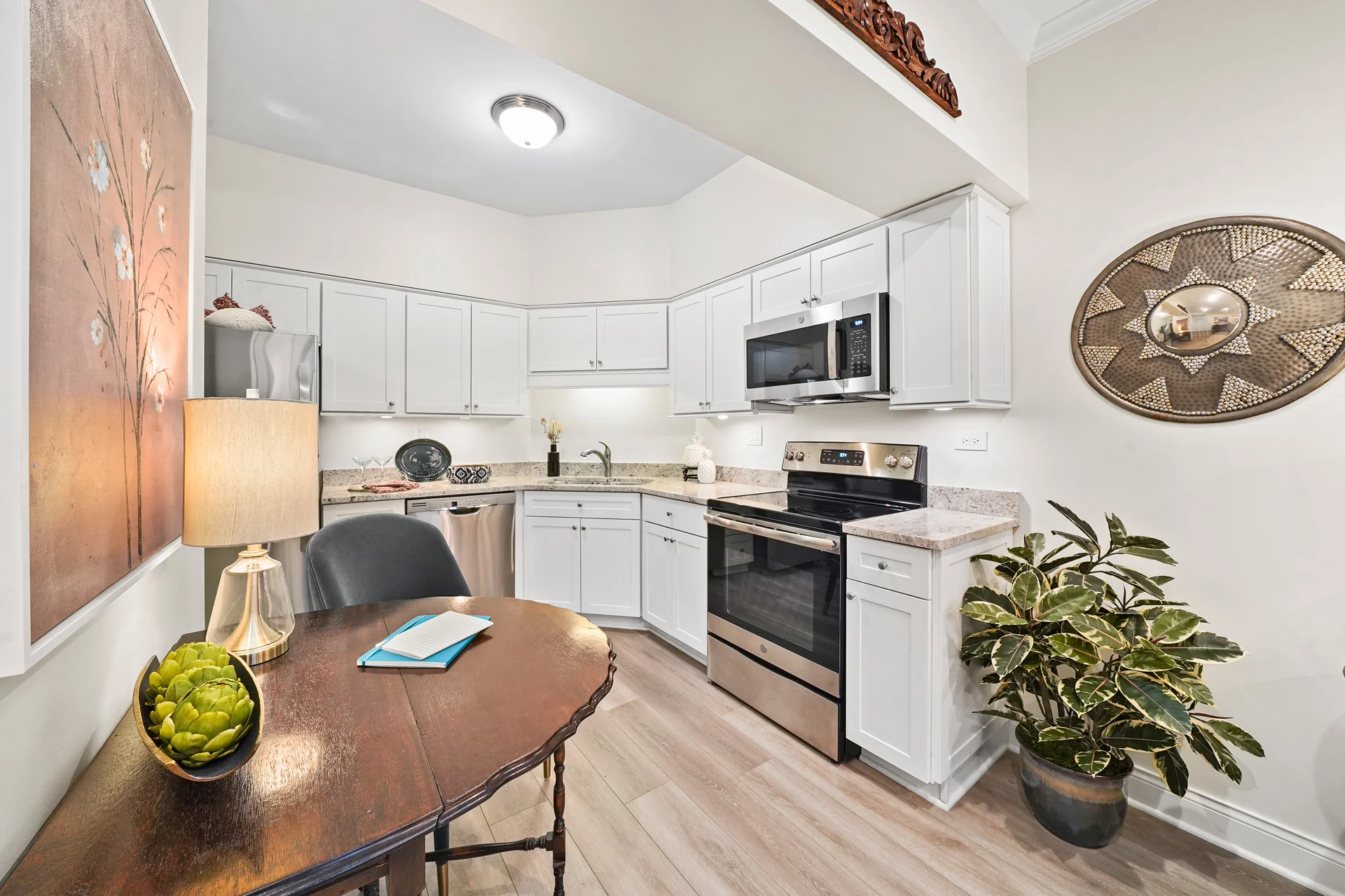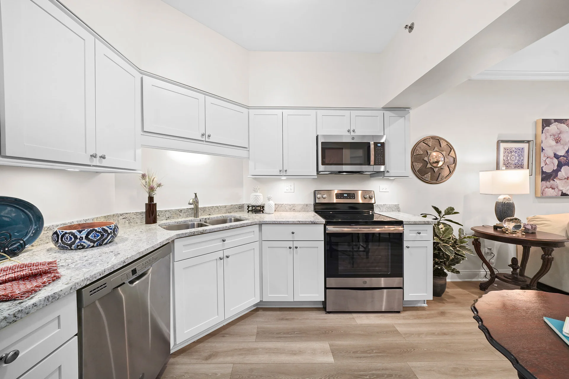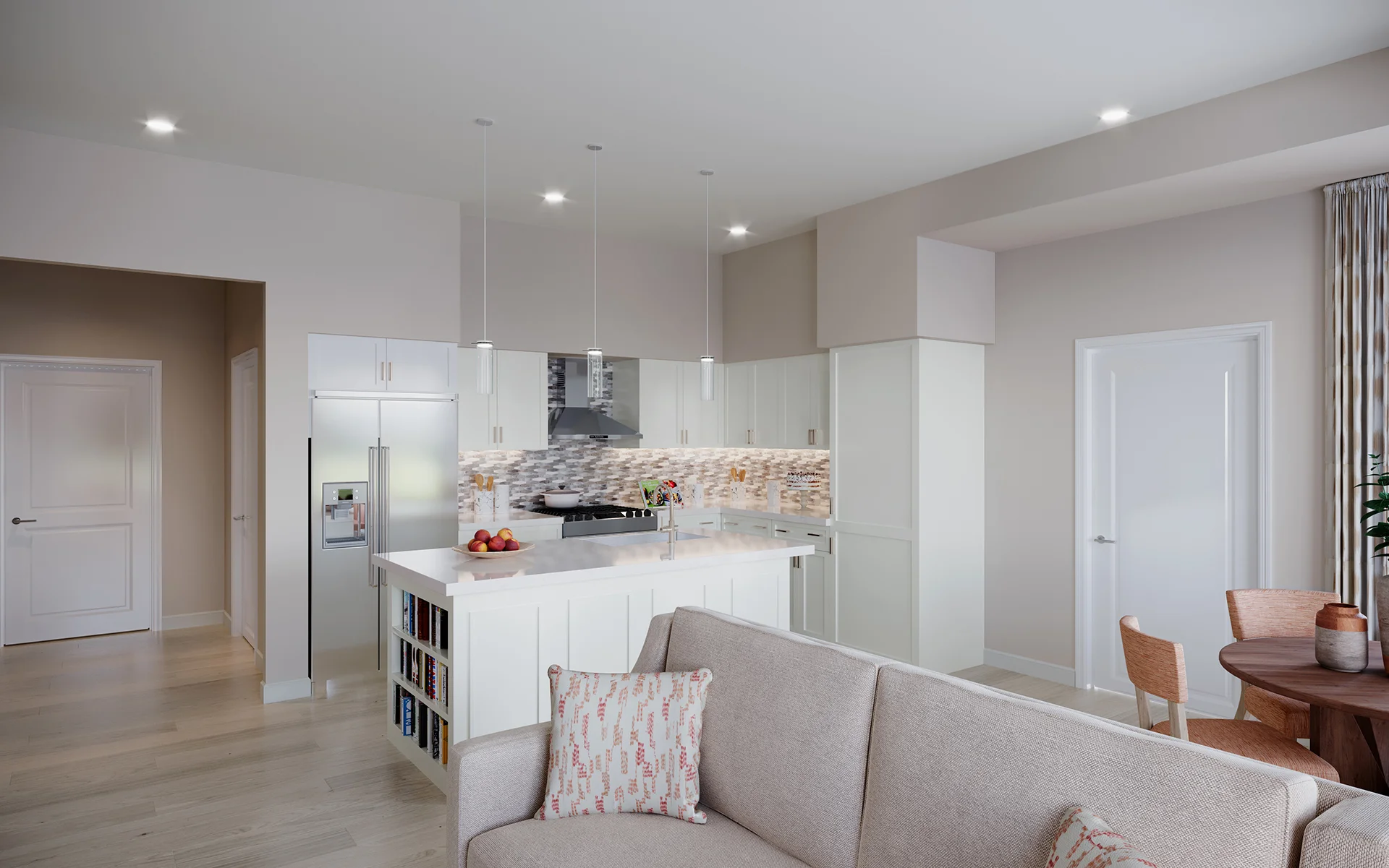 The Jameson offers a refined living experience with 1,288 square feet of space. Two bedrooms, each with an en-suite bathroom, plus an additional half bath, provide both comfort and convenience. Additionally, a cozy corner patio off the dining area extends your living space outdoors, while the open floor plan kitchen adds convenience.