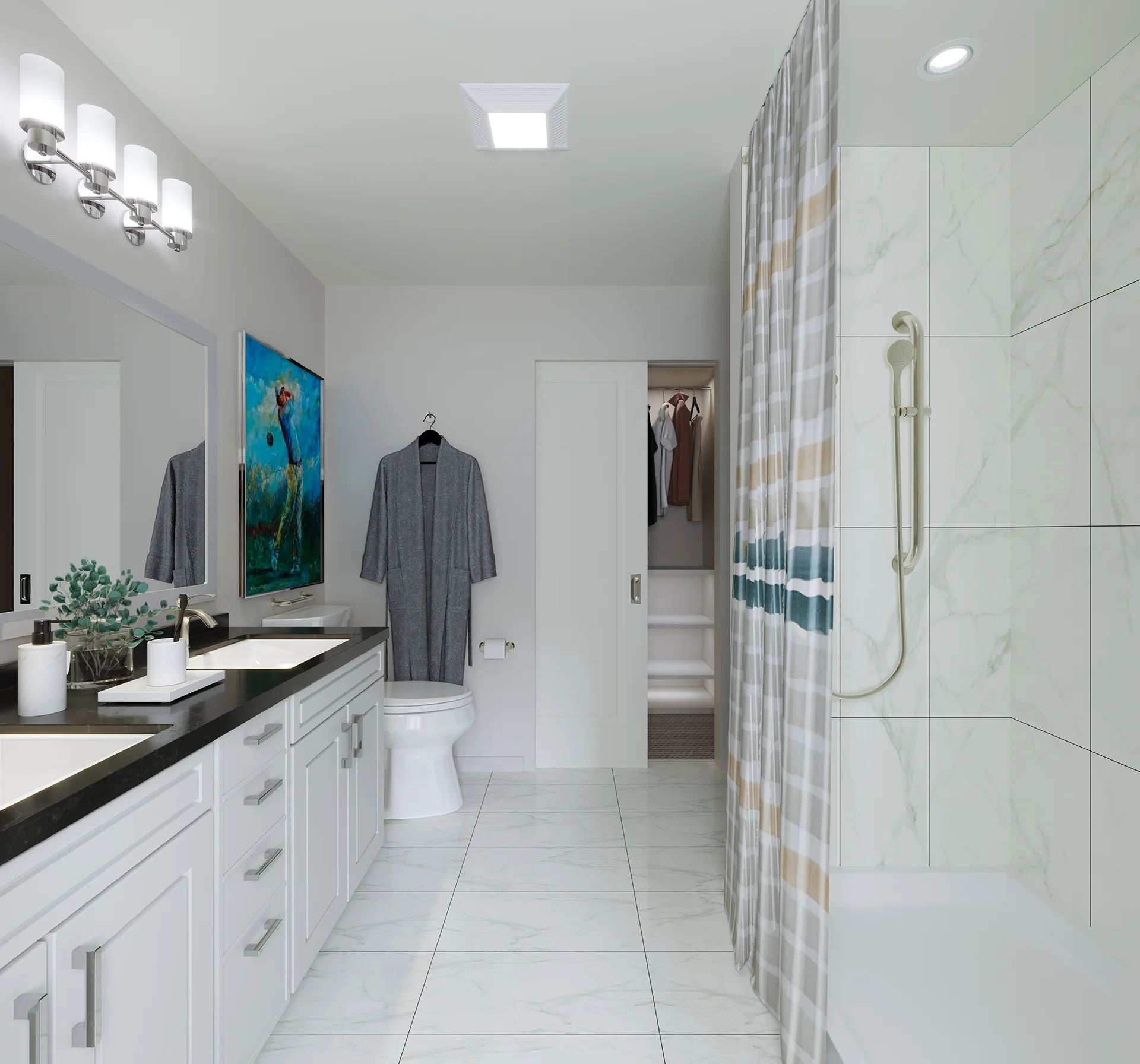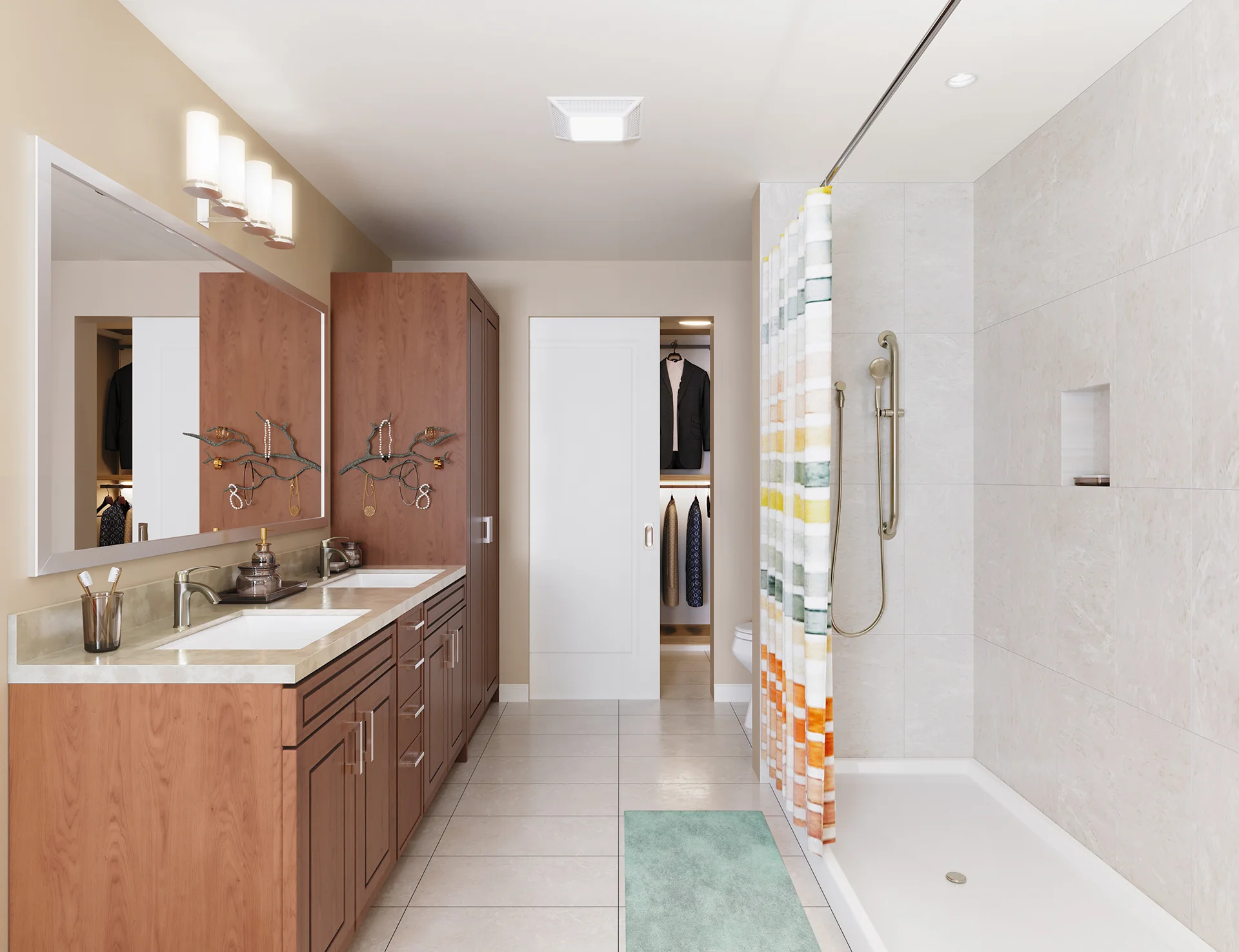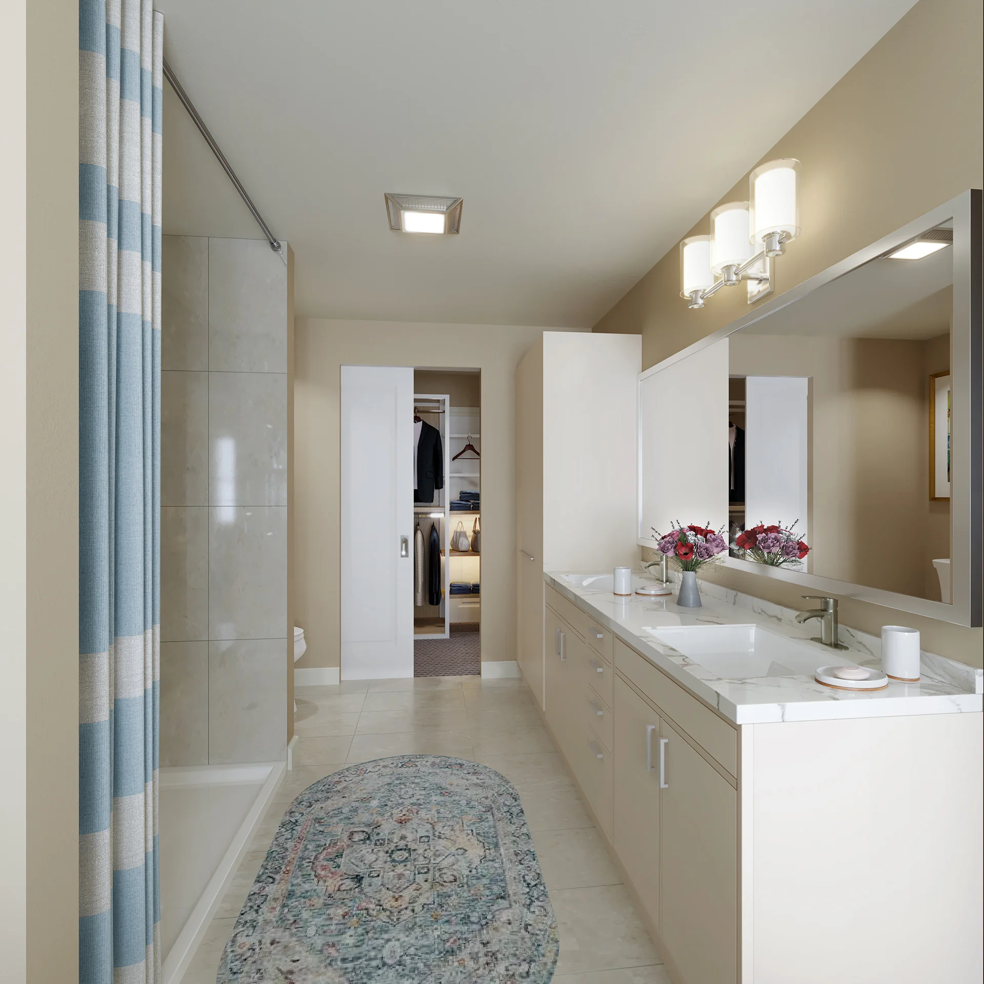 Find everything you need in this one-bedroom apartment. An airy kitchen and open living space lead to your private bedroom with dual access bathroom and pass-through walk-in closet.
