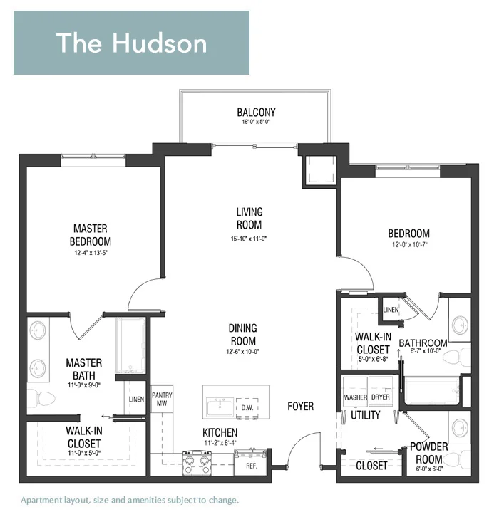 Step into convenience with The Hudson. This 1,255-square-foot floor plan features two bedrooms, 2.5 bathrooms, a corner kitchen, and ample living space that's perfect for entertaining or relaxing in sophisticated style. With its walk-out patio, this floor plan is also great for those who value some extra outdoor space.